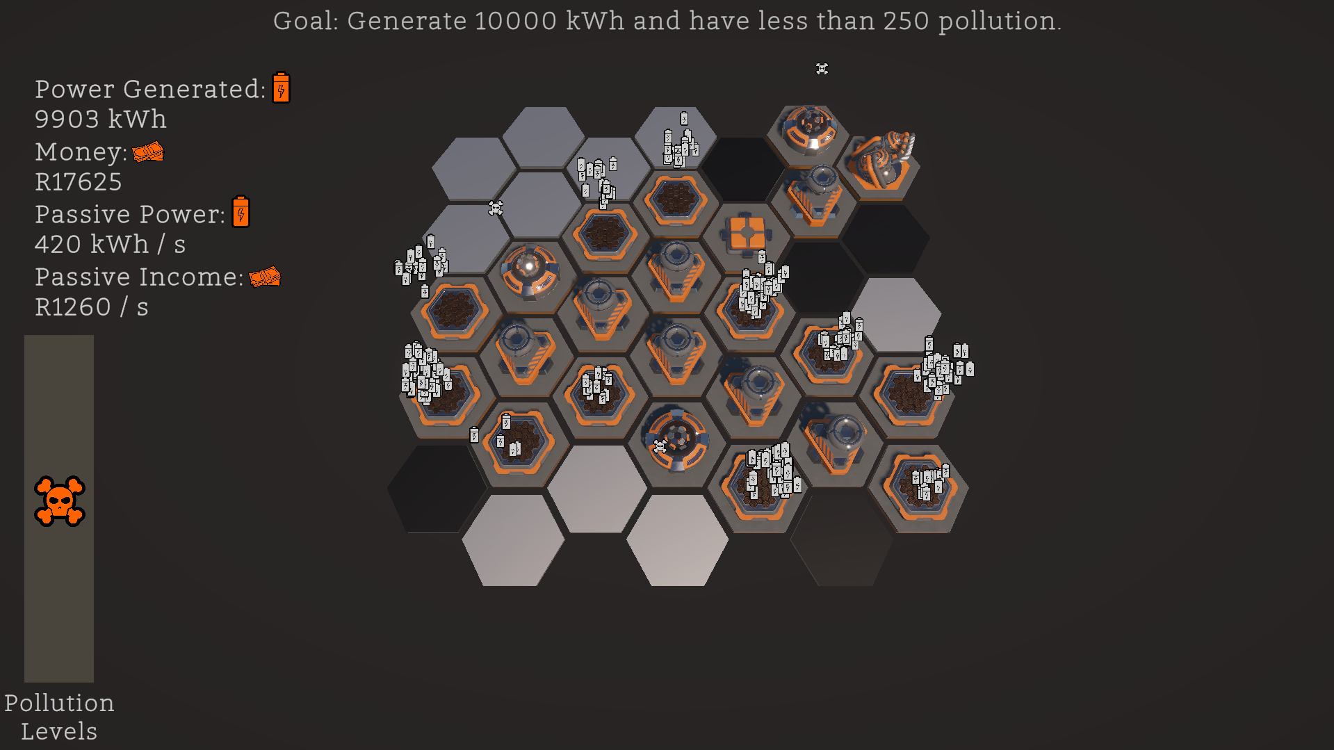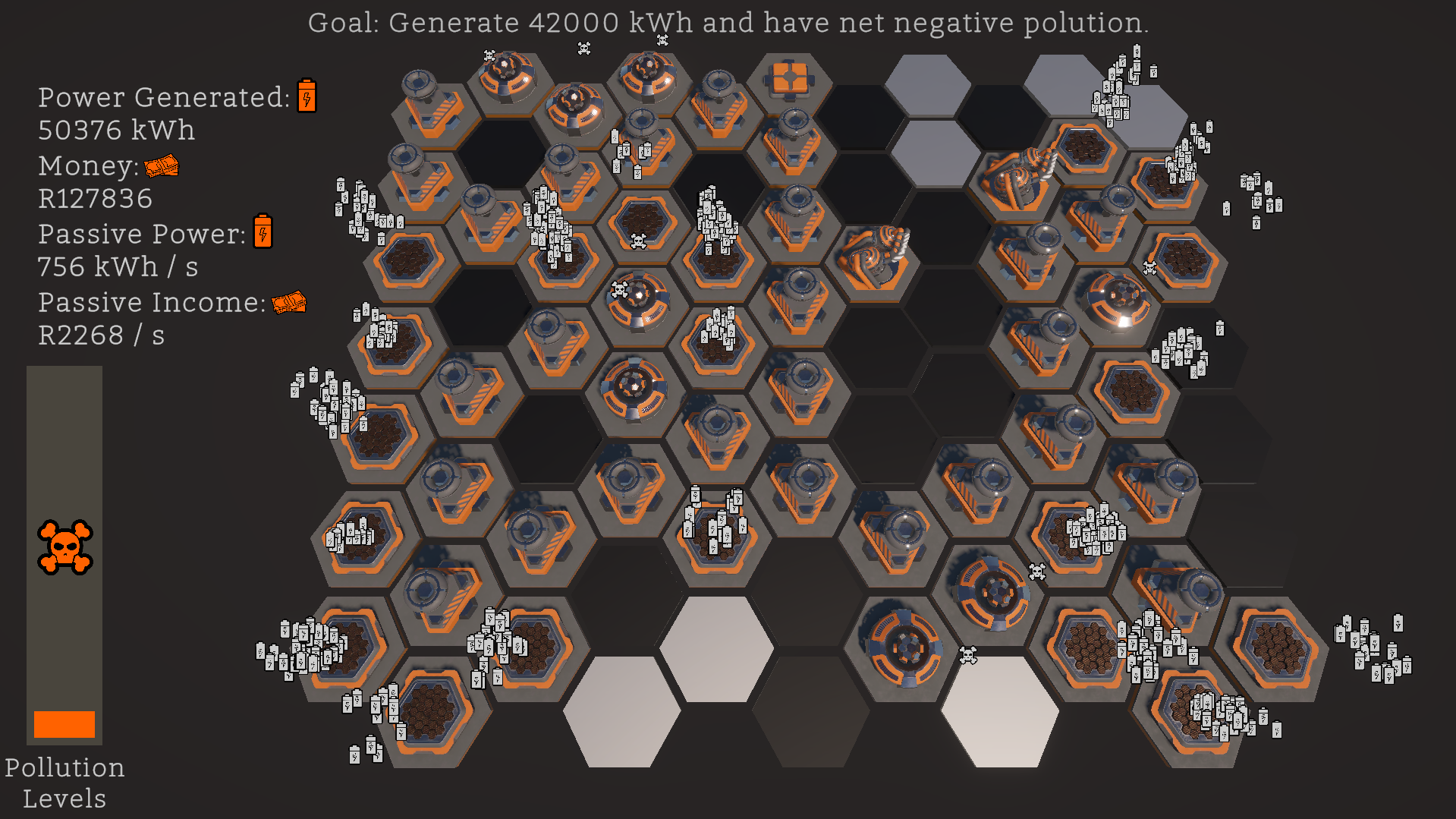 Sparked Up is a sci-fi-themed puzzle game where you try to generate energy, make money, and not die from pollution across levels.